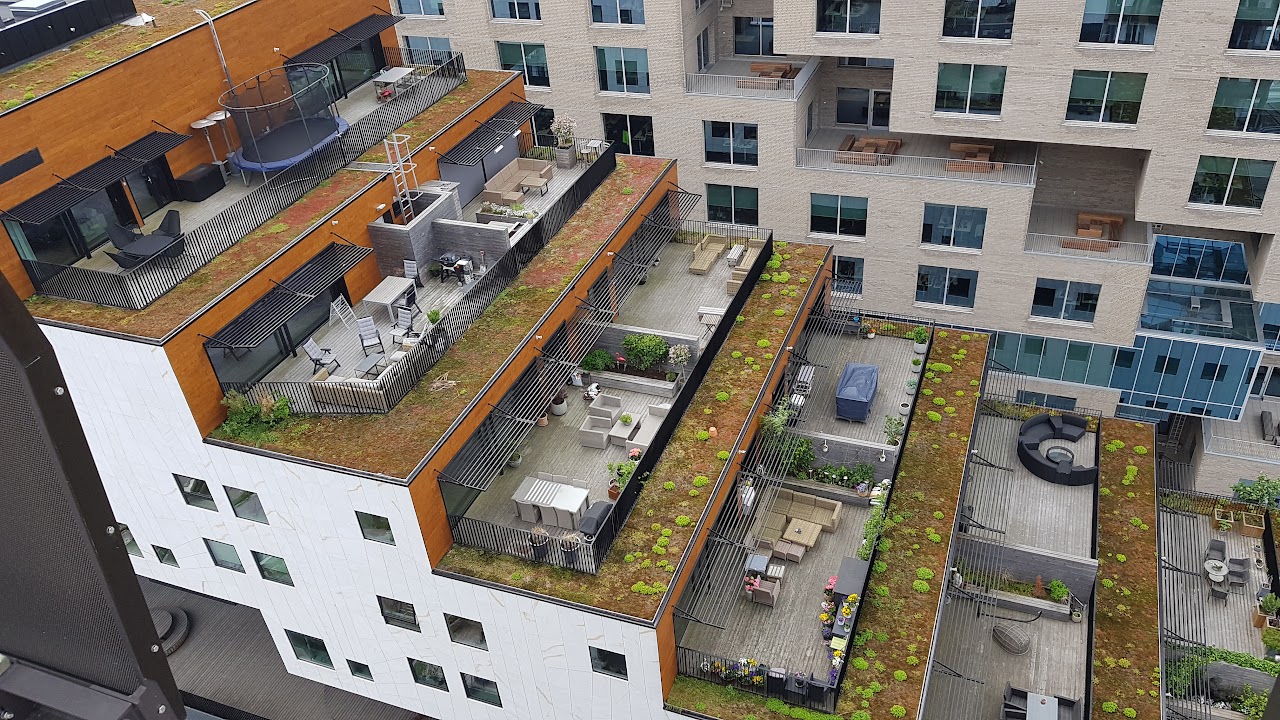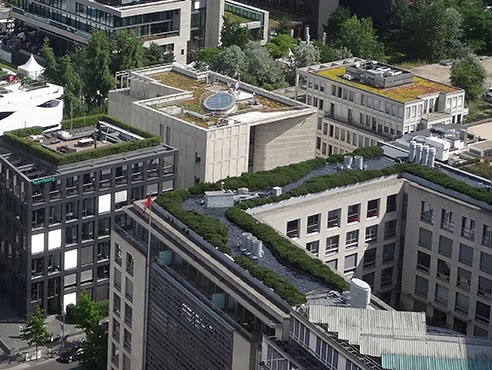 La reconversión de las nuevas cubiertas en invernaderos reciclando el CO2 y el NO2 de las calderas y absorbiendo el calor, reduciría la contaminación de gases y la isla de calor, creando lugares de recreo y producción de alimentos y flores.